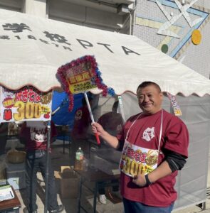 おやじのポテトはいかがですかー? 二度焼きして、愛情タップリ出来たてホヤホヤです。 もう20年になります。老舗です。