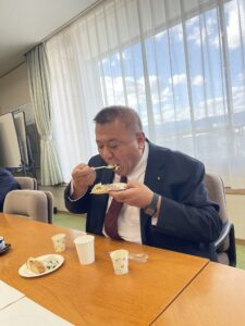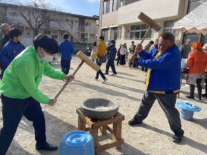 70キロの餅米を中学生たちと突きました! 昼頃までかかりました。美味しかったです。